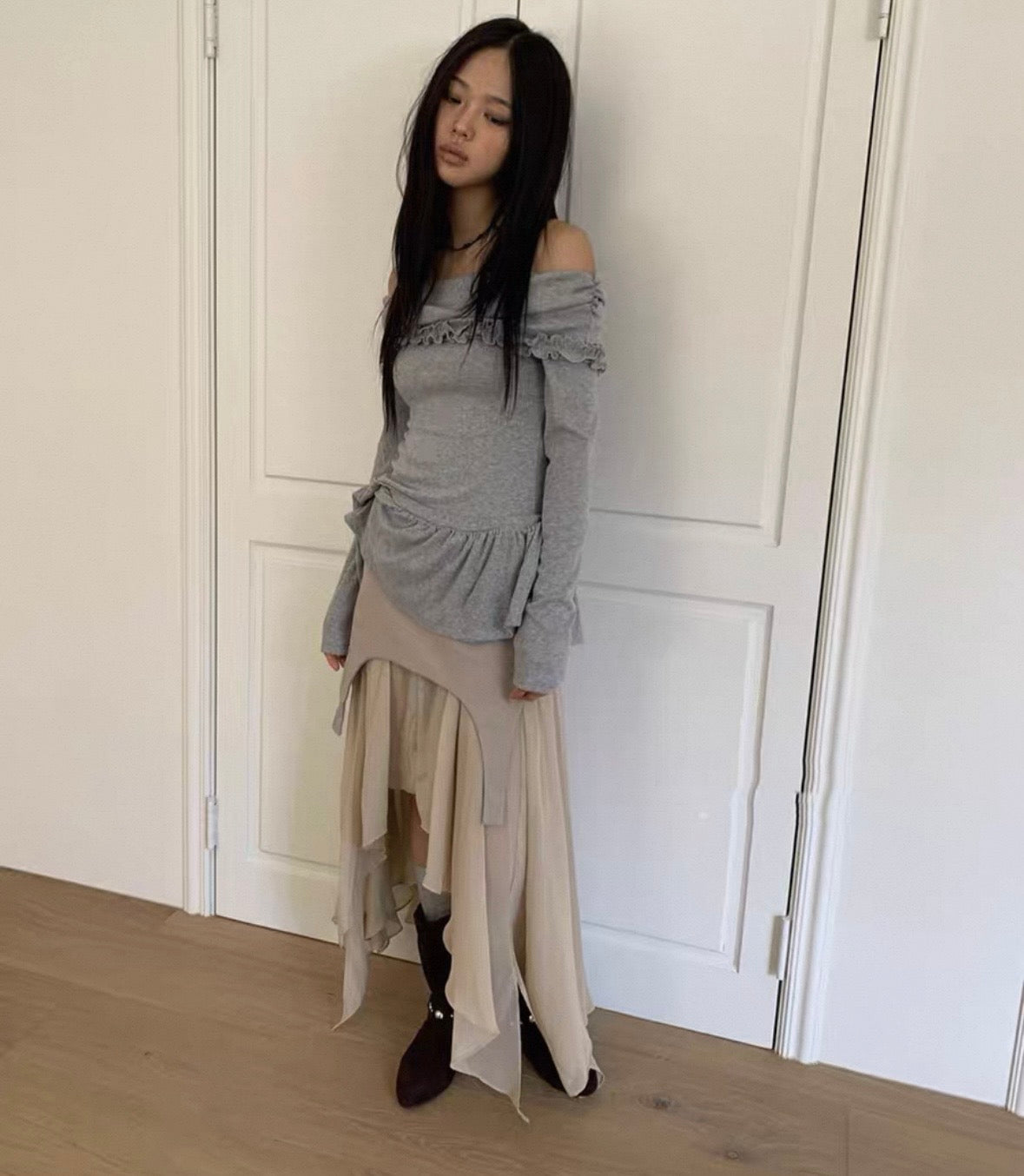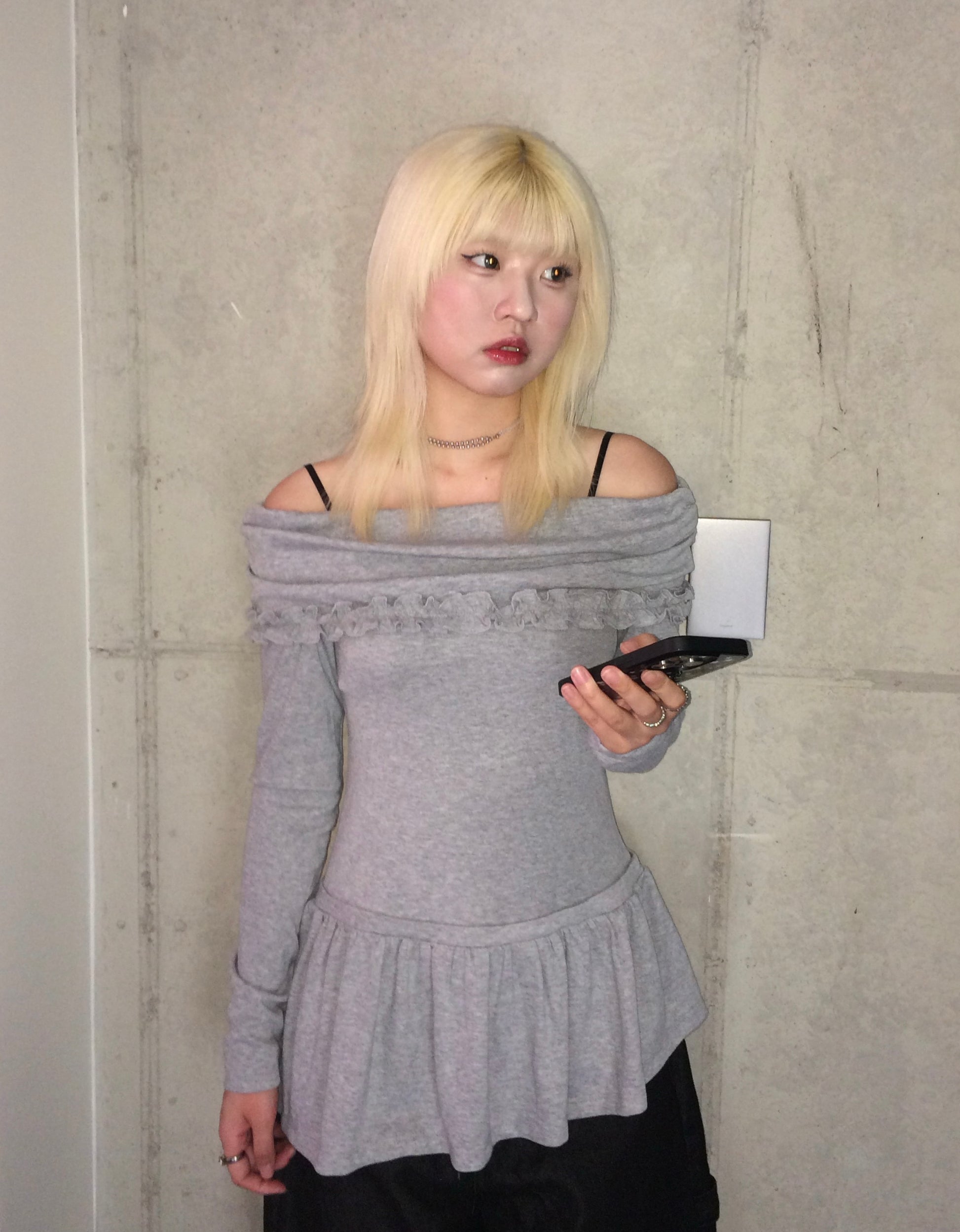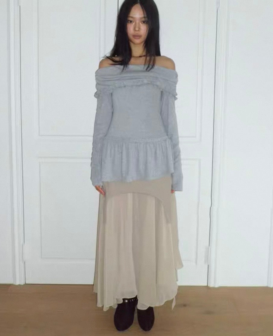 Off shoulder ruffle layer top